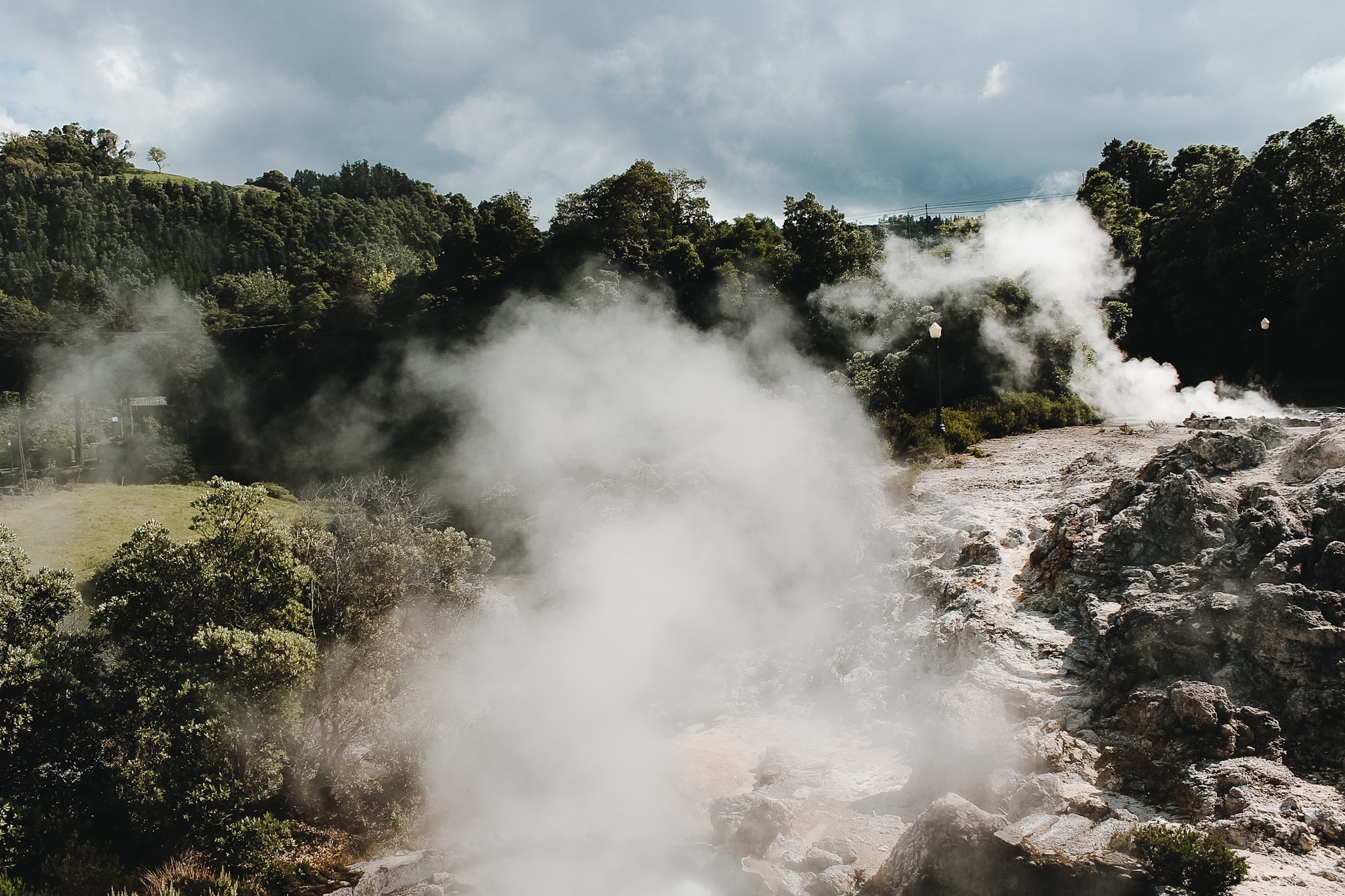 Onze favoriete bezienswaardigheid in Furnas waren de impressionante Caldeiras das Furnas, ook wel Fumaroles das Furnas genoemd. Elk jaar komen duizenden Portugezen en buitenlanders naar dit gebied om de indrukwekkende vulkanische manifestaties te bewonderen. De caldeiras zijn kleine vijvers die sinds de uitbarsting van de Furnas-vulkaan in 1630 in de kraters zijn gevormd. Door de nabijheid van magma onder de grond bereikt het regenwater in deze vijvers temperaturen tussen de 70 en 100 graden. Dit zorgt voor het ontstaan van fumarolen en warmwaterbronnen. De fumarolen, met hun sissende stoom en zwavelgeur, geven je zintuigen een bijzondere ervaring – vooral je reukvermogen wordt hier flink op de proef gesteld!