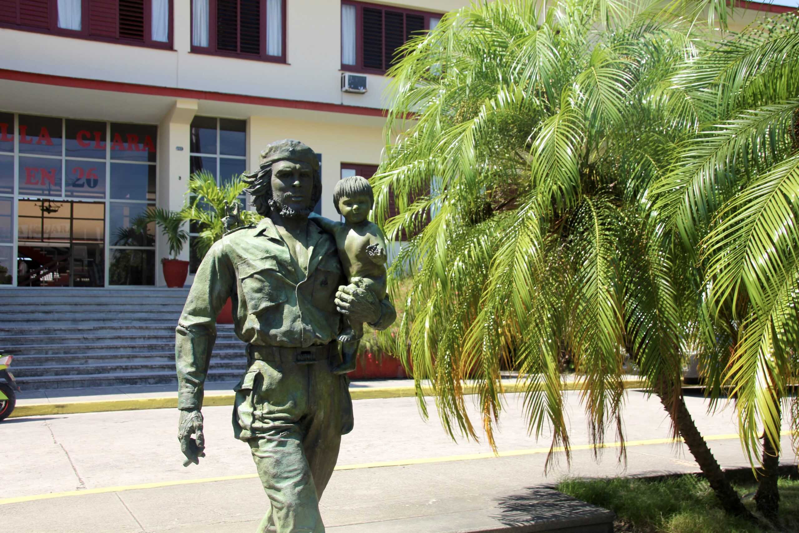 Op deze locatie, voor het voormalige provinciale hoofdkwartier van de Cubaanse Communistische Partij in Santa Clara, staat nog een mooi monument van Che Guevara die een kind vasthoudt. Het is een mooi statuut met veel symboliek. Het lijkt een eenvoudig beeld zonder veel verhaal of context, maar als je goed kijkt vind je verwijzingen naar het leven en karakter van Che Guevara. De iconen van mannen op zijn broeksriem stellen bijvoorbeeld de mannen voor die samen met hem zijn vermoord in 1967.