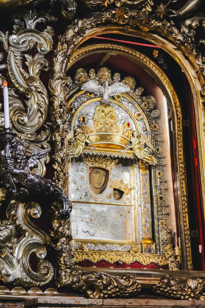 Neem zeker ook de tijd om de basiliek te verkennen. De toegang is gratis en het interieur is ontzettend mooi. Onder gelovigen bestaat er een legende dat als je de heilige icoon van de Madonna di San Luca lange tijd observeert, haar blik je volgt. Het gevoel dat ze naar je kijkt is vooral sterk wanneer je haar benadert vanaf de trap die naar het altaar leidt