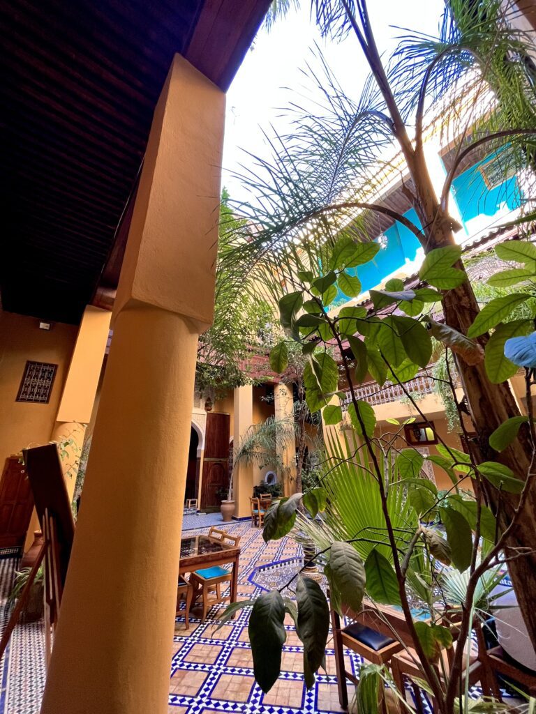 Een rustgevende en centrale verblijfplaats maakt je verblijf in Fès bijzonder aangenaam. Wij logeerden in de kleurrijke riad Medina Social Club met zeer ruime kamers en een zalig dakterras. Van hieruit heb je één van de mooiste uitzichten over de stad. Je kunt er bovendien heerlijk eten, drinken en bekomen van je ongetwijfeld geslaagde dagen in Fès. Een overnachting boeken vanaf €52 per nacht voor een tweepersoonskamer, ontbijt inbegrepen.