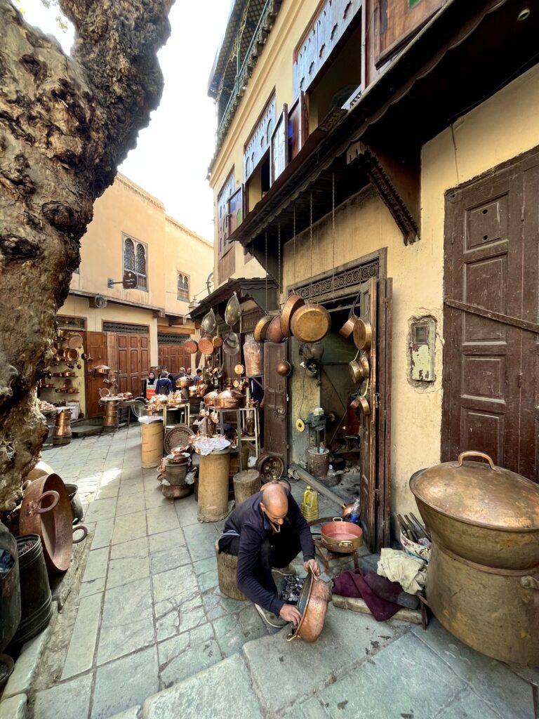 Centraal in de medina vind je Place Seffarine. Hier worden verschillende ambachten op straat uitgevoerd. Je bent getuige van het dagelijkse leven en ziet waar de souvenirs uit de vele winkeltjes écht vandaan komen. De authenticiteit is wat de plek zo aantrekkelijk maakt: hier wordt écht hard gewerkt en niets in scène gezet om toeristen te entertainen.