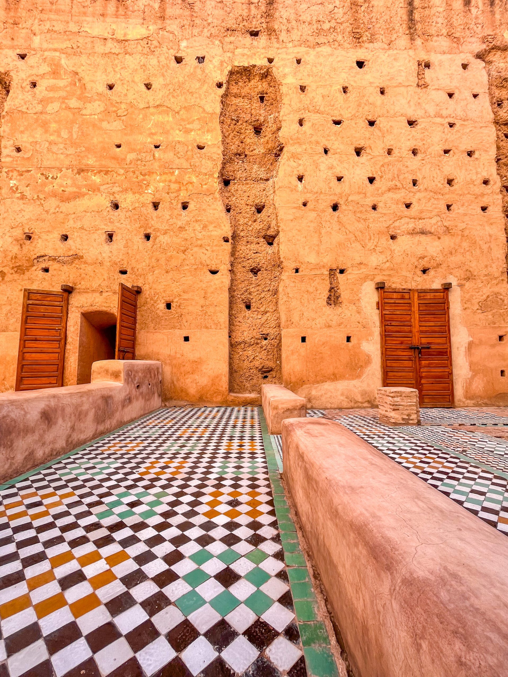 Tegenwoordig bestaat het El Badi-paleis uit de overblijfselen van een ooit indrukwekkend paleis, gebouwd door sultan Ahmed el-Mansour in 1578. Het paleis werd gebouwd met een combinatie van traditionele Marokkaanse en Europese stijlen en was versierd met ingewikkelde mozaïeken, marmeren zuilen en sierlijk houtsnijwerk. Destijds telde het paleis zo’n 360 kamers en kon je wegdromen in de gigantische binnenplaats met een mooie vijver. Op één van de filmpjes die je op de binnenplaats kunt bekijken, zie je hoe het paleis enkele eeuwen geleden floreerde. Inkom kost €7 en je spendeert er gemakkelijk een uur. De openingsuren zijn van 9:00 tot 17:00, 7/7 en het is gelegen op ongeveer 15 min. wandelen van de Koutoubia Moskee.