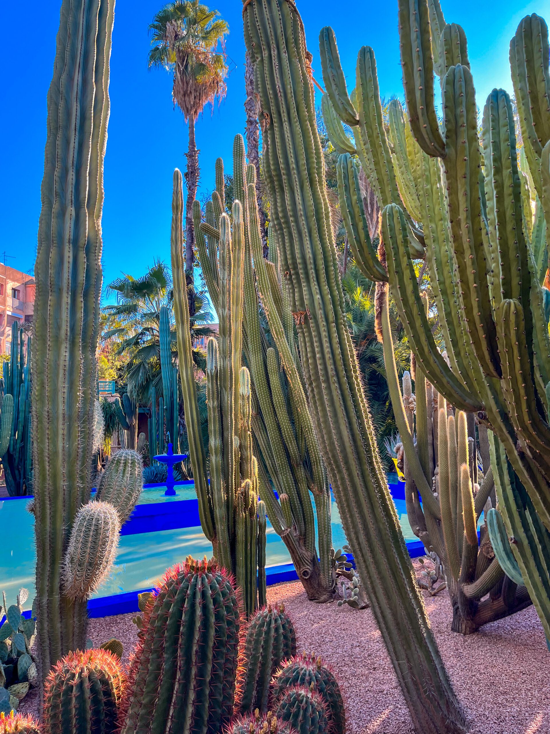 De Jardin Majorelle, het Pierre Bergé Museum en het Yves Saint Laurent Museum zijn een bekende uitstap in Marrakesh. Net buiten het stadscentrum, maar nog steeds op wandelafstand van de Koutoubia Moskee, vind je dit blauw stukje paradijs tussen de drukke straten. Planten en bomen uit verschillende windstreken zijn hier samengebracht, net zoals het museum waar je wel een extra toegangsticket voor nodig hebt. Sinds januari 2023 kun je ter plaatse geen tickets meer bemachtigen, dus wees zeker van je toegang door online te boeken. Inkom tot (enkel) de tuin kost €15 voor volwassenen en €7,50 voor internationale studenten op vertoon van een studentenkaart. De openingsuren zijn van 8:00 tot 18:00, 7/7.